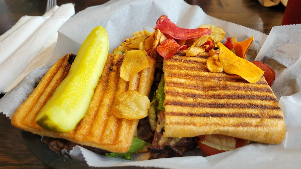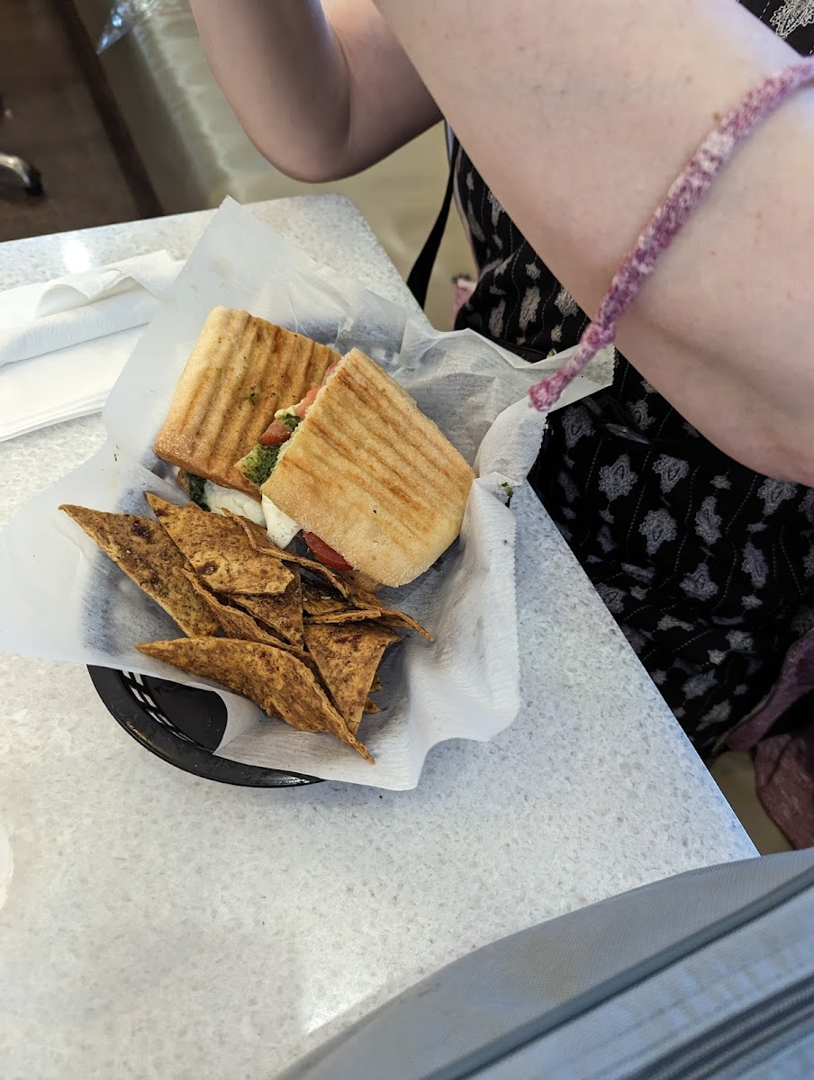 This cafe is located in Reston near the lake having beautiful view. The ambience is pretty Greek and happy. You can order food from there and enjoy either inside or outside with the beautiful lake view. The pizza was brick oven cooked and was so tasty. They used fresh mozzarella. They have vegan and gluten friendly options too. The staff it’s so friendly. We also had panini that came with chips and pickled cucumber. Its was also nice. They have spicy sauce ketchup and other seasoning too you can use